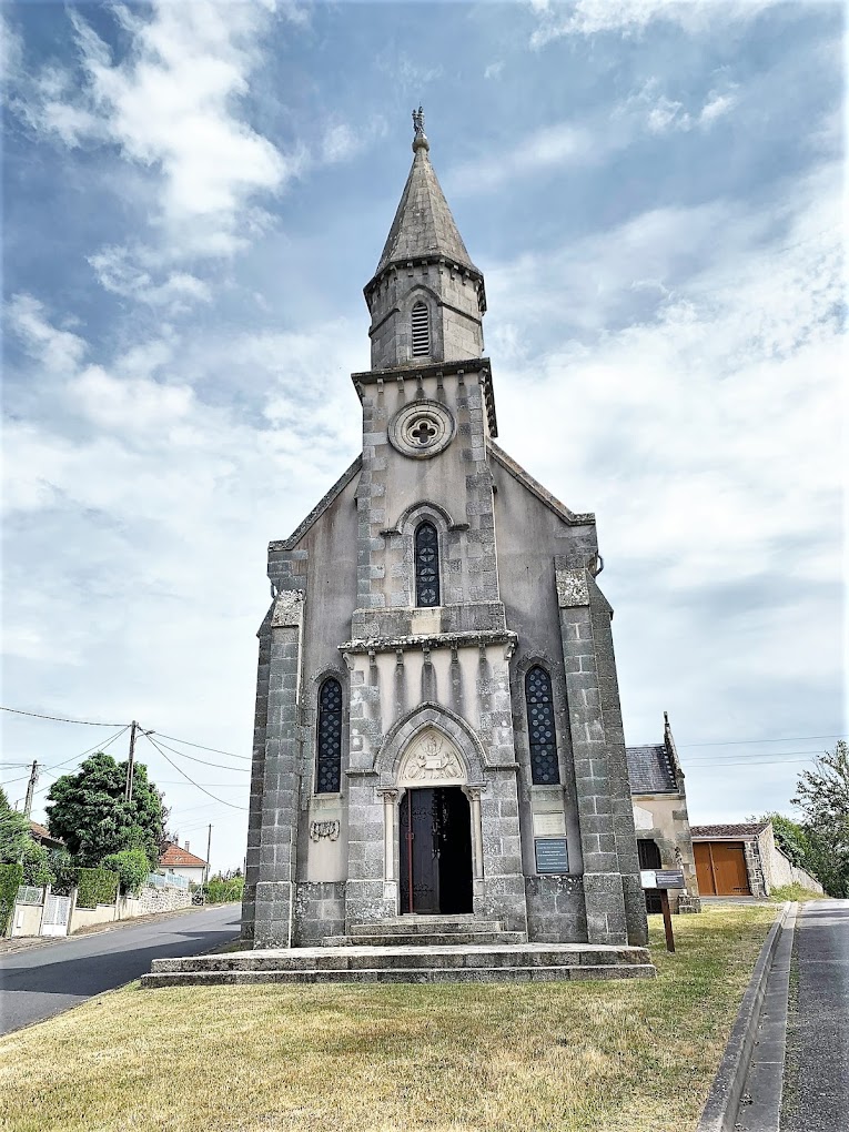 Depuis le vieux Bellac, la chapelle, campée sur l’éperon de Saint-Sauveur, a belle allure avec sa façade néogothique ornée d’un clocher dont la flèche en granite s’élève à une hauteur de 25 m.